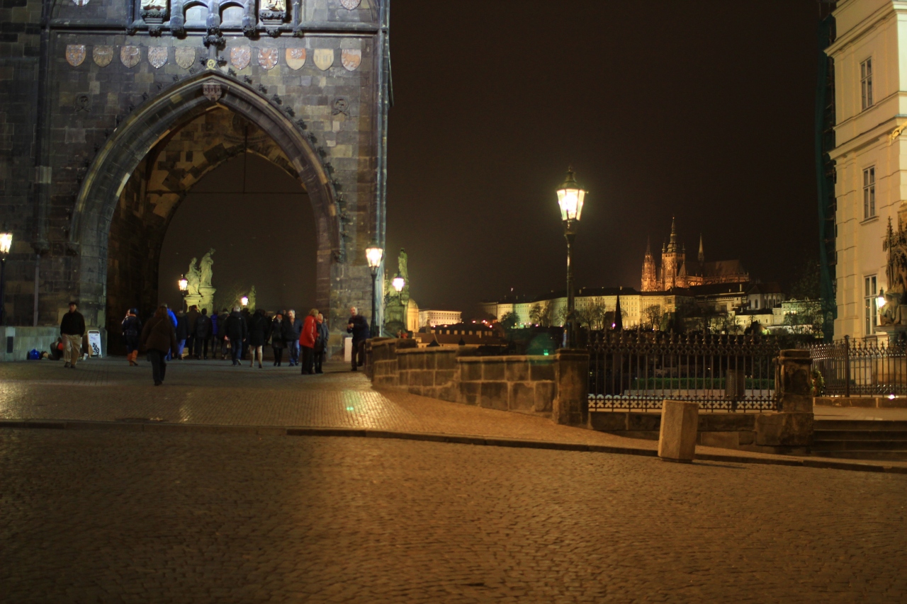 昼の丘の上に見えるプラハ城の遠景も見事ですが、夜は付近にある尖塔がライトアップされ、歩きながらプラハの夜景を見ることができる最高の散策スポットです。