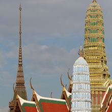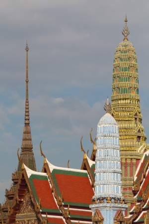 エメラルド寺院という名で有名ですが、そのエメラルドの仏像は遠くからしか見ることができず、良く見えなくて残念。建物や彫刻などすばらしいものが多い境内ですが、個人的には壁画が気に入りました。