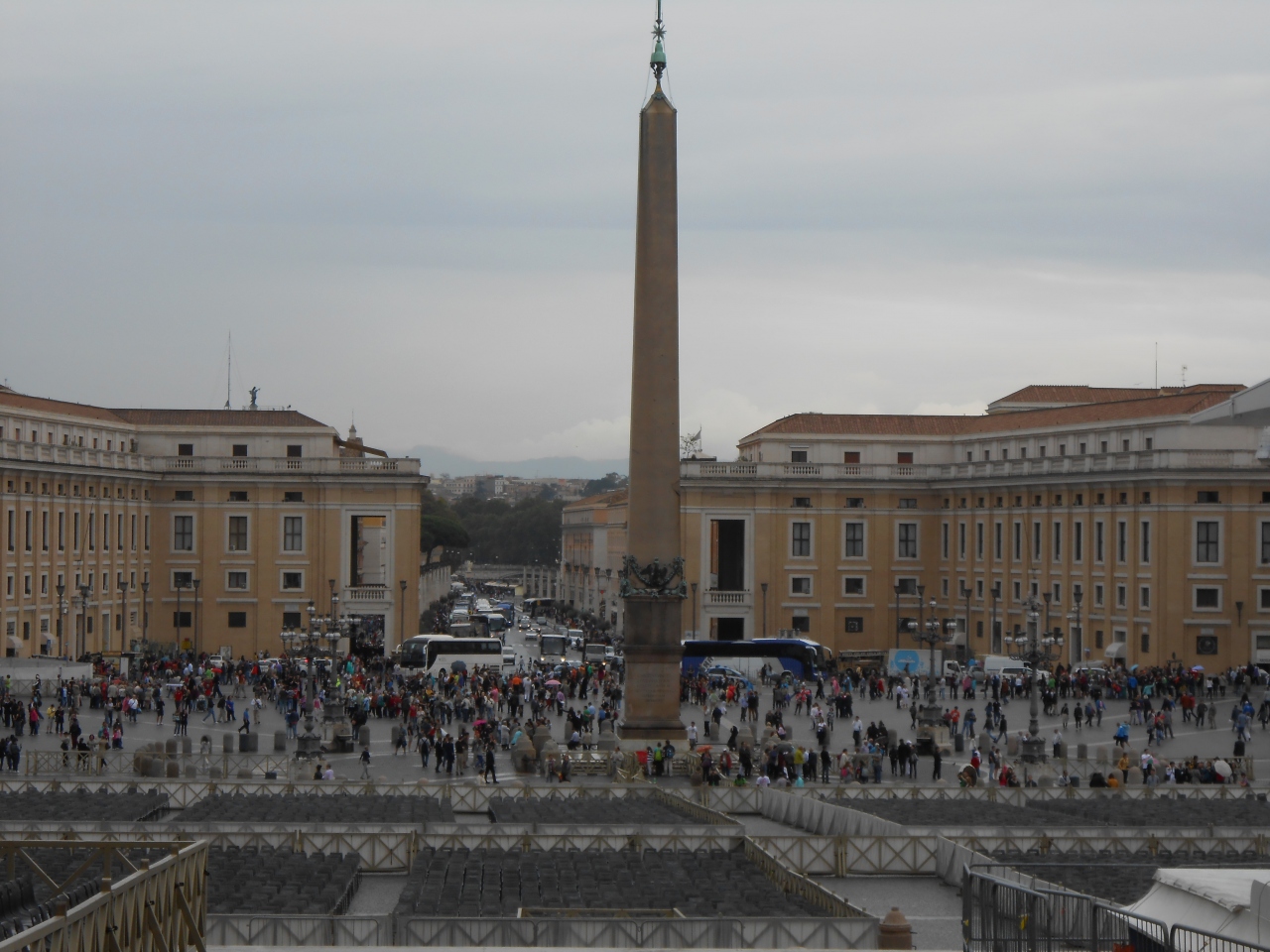 テルミニ駅周辺のホテルに宿泊していたので、地下鉄A線にのりOttaviano-S.Pietro-Musei Vaticaniで下車し徒歩5分ほどです。大聖堂の入り口から見下ろすことで巨大な広場のキャパ感を実感できます。