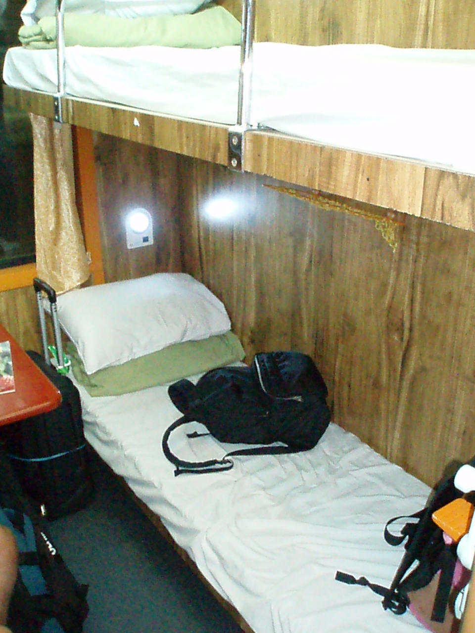 ~シーツや枕は前の客の使いまわし・・・これが1等車?ただ横になって寝れるだけです。普通の1等車でした。こちらはずっと夜間走行、景色は見えません!