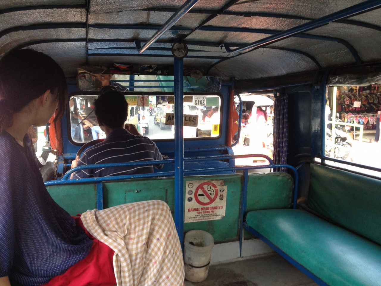 料金は一律で、私が乗ったほとんどのジプニーは8ペソでした。座席はバスのようではなく、地下鉄のような作りで両端に長椅子があります。始発点で乗った場合、満席にならないとなかなか発車しません。