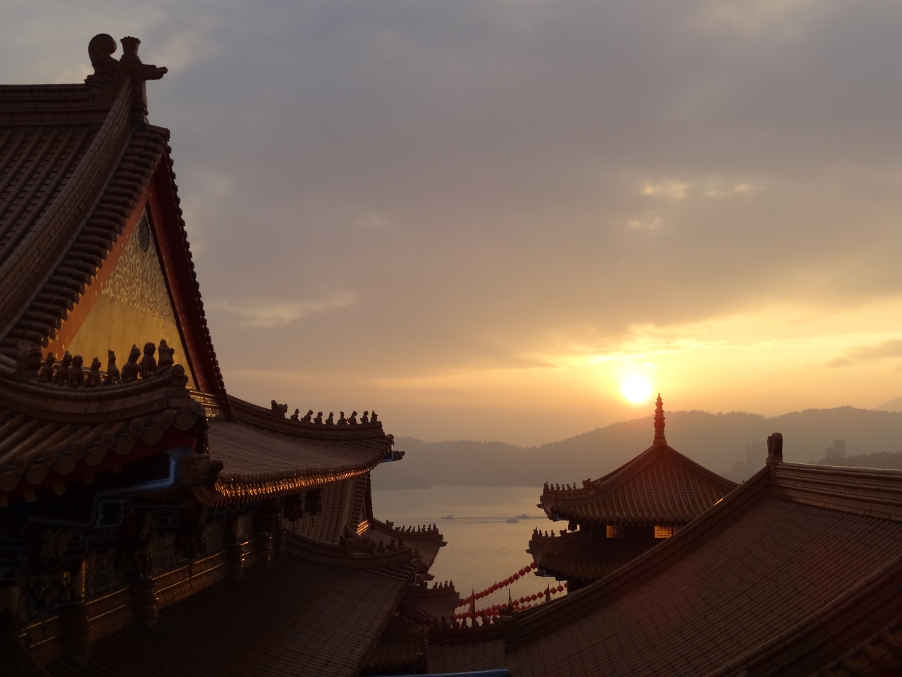 正門入ってひたすら上り階段を行くことになりますが、疲れを忘れさせる素晴らしい景色に出会えます。夕刻はオレンジ色に染められていく文武廟と日月潭、沈みゆく夕陽が美しく神秘的で感動。晴天の昼間は‘日月潭と空の青’をバックに文武廟の橙屋根が映え、そのコントラストがとても美しく感激。