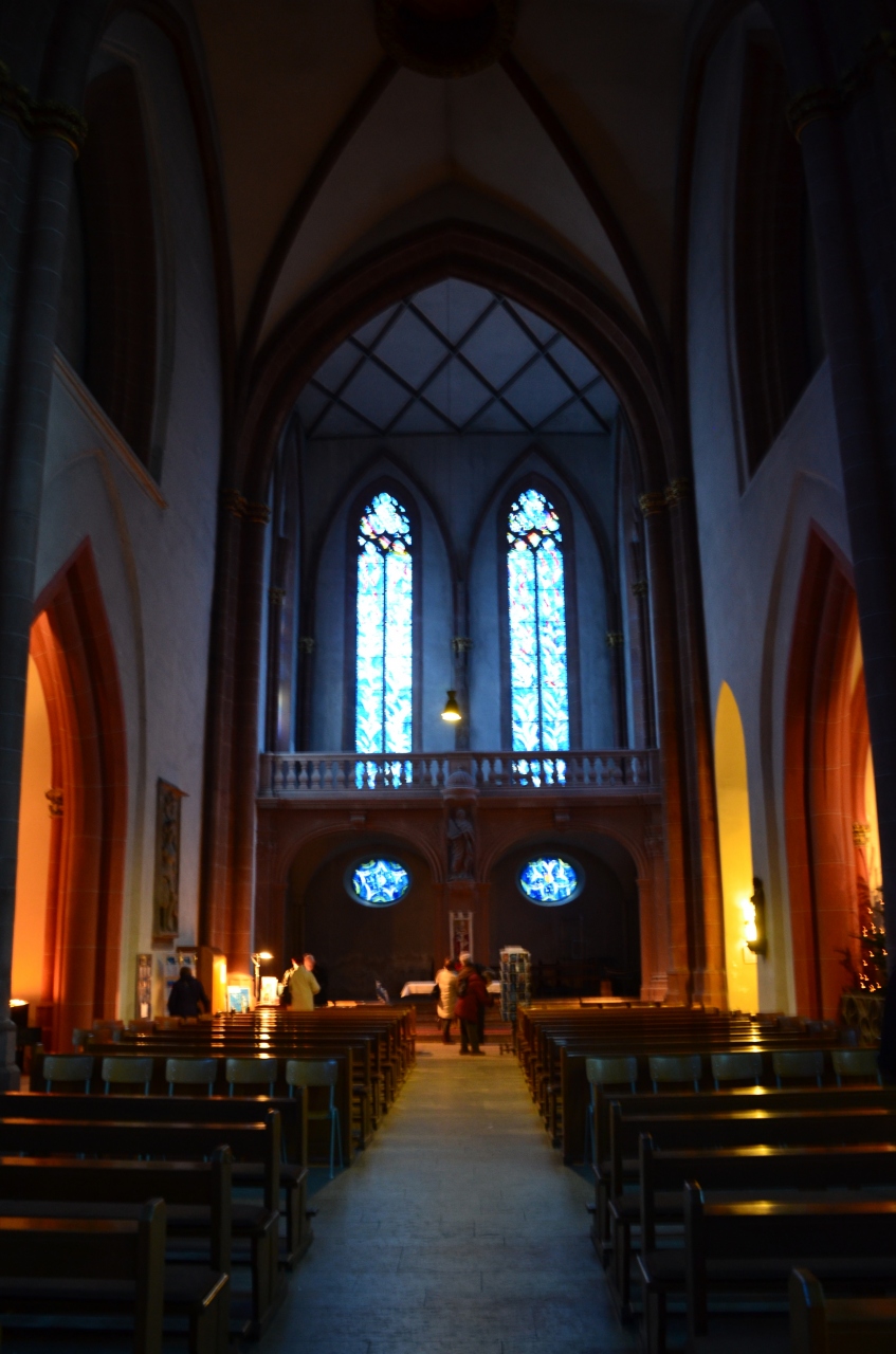 何が青の世界かというと、1970年代にシャガールによってデザインされた青いステンドグラスを通して、差し込む光で教会の中が神秘的なブルーに染まっているから。