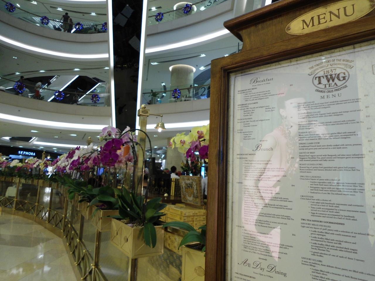 メニューを見ると、困ってしまう程の種類の紅茶があります。結局、蘭のフレイバーの中でおすすめしてもらったものを頼みました。飲み方も丁寧に教えてくださり、お店の方は感じが良かったです。お値段は少し高いですが、買い物天国のシンガポールで、疲れた時にゆっくりティータイムも良いと思います。