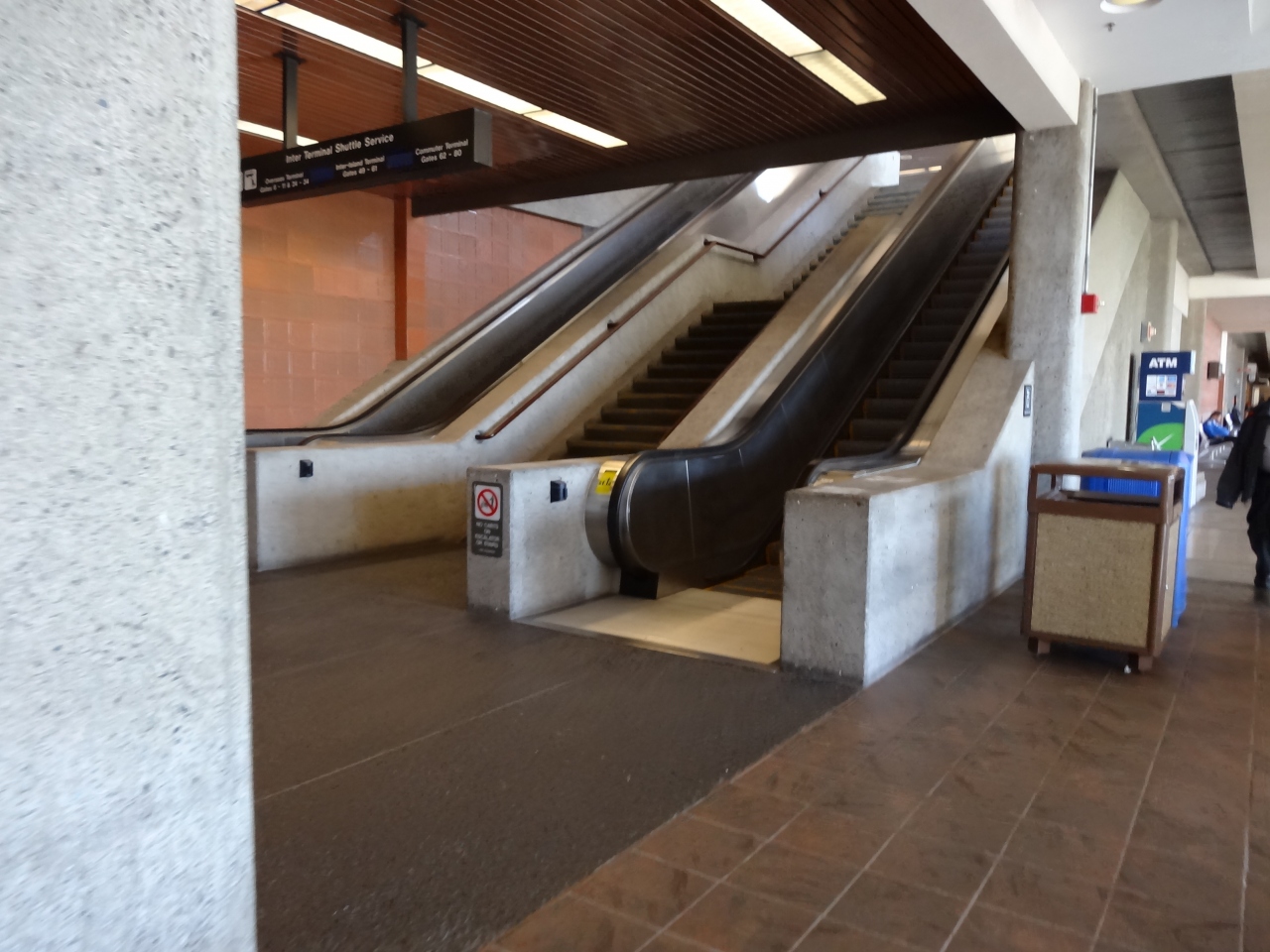 エスカレーターで上に行くとターミナル間を無料で乗せてくれるバスがあります。