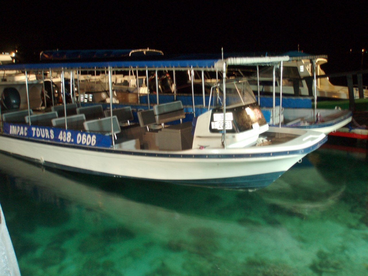 レストランのテラス席からはライトアップされた海とツアーボートが綺麗です。