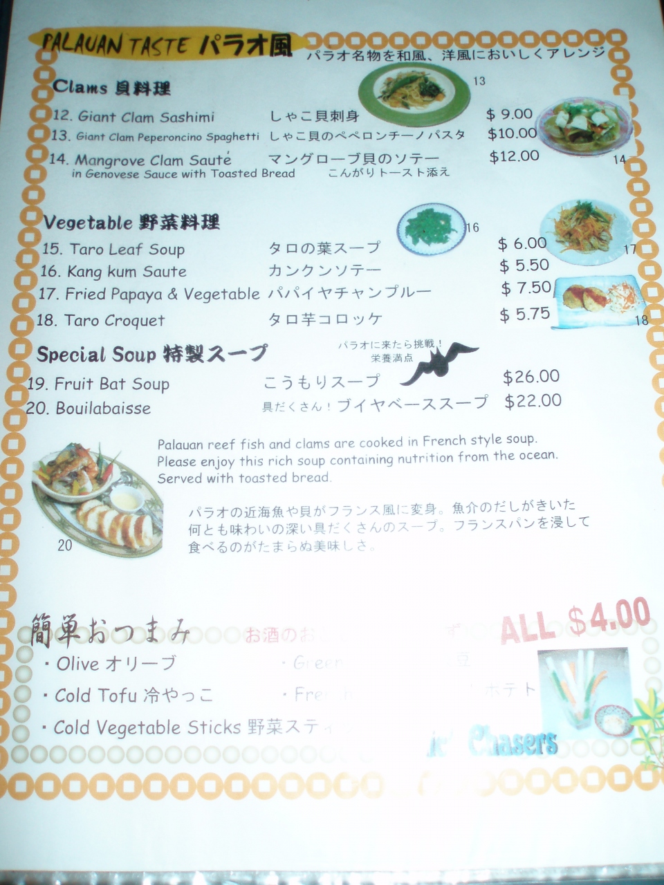 レストランには日本語メニュー(かなり豊富な食事も用意されてます)も日本人スタッフも働いていました。