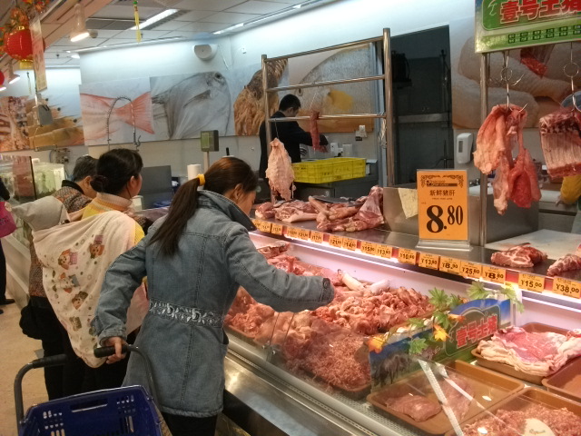 生鮮食品売り場を見物するのが面白いです。 野菜などはだいたい日本のようにパック詰めされているものが多いですが、肉と魚は違います。