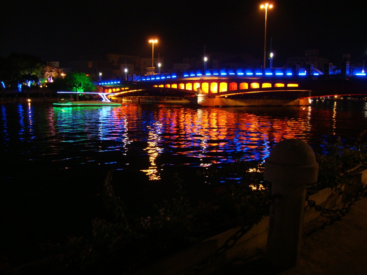 仁愛公園から愛之船(小さな遊覧船)に乗りました。川面に映る夜景がゆらゆら揺れて美しい。ロマンチック。愛之船は16:00~23:00、20分おきに出航。