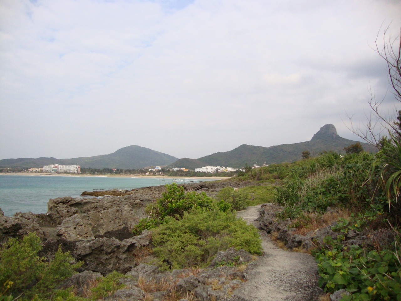 ホテル正面の小灣海水浴場の右側にそびえる青蛙岩、この周りをぐるっと回る海沿いの遊歩道がありました。墾丁青年活動中心を入ると遊歩道への案内看板あり。