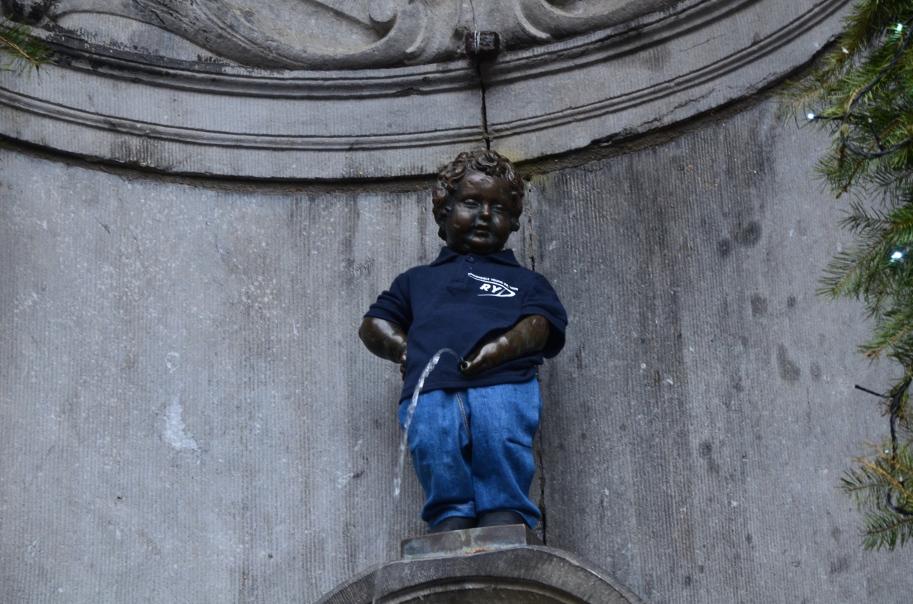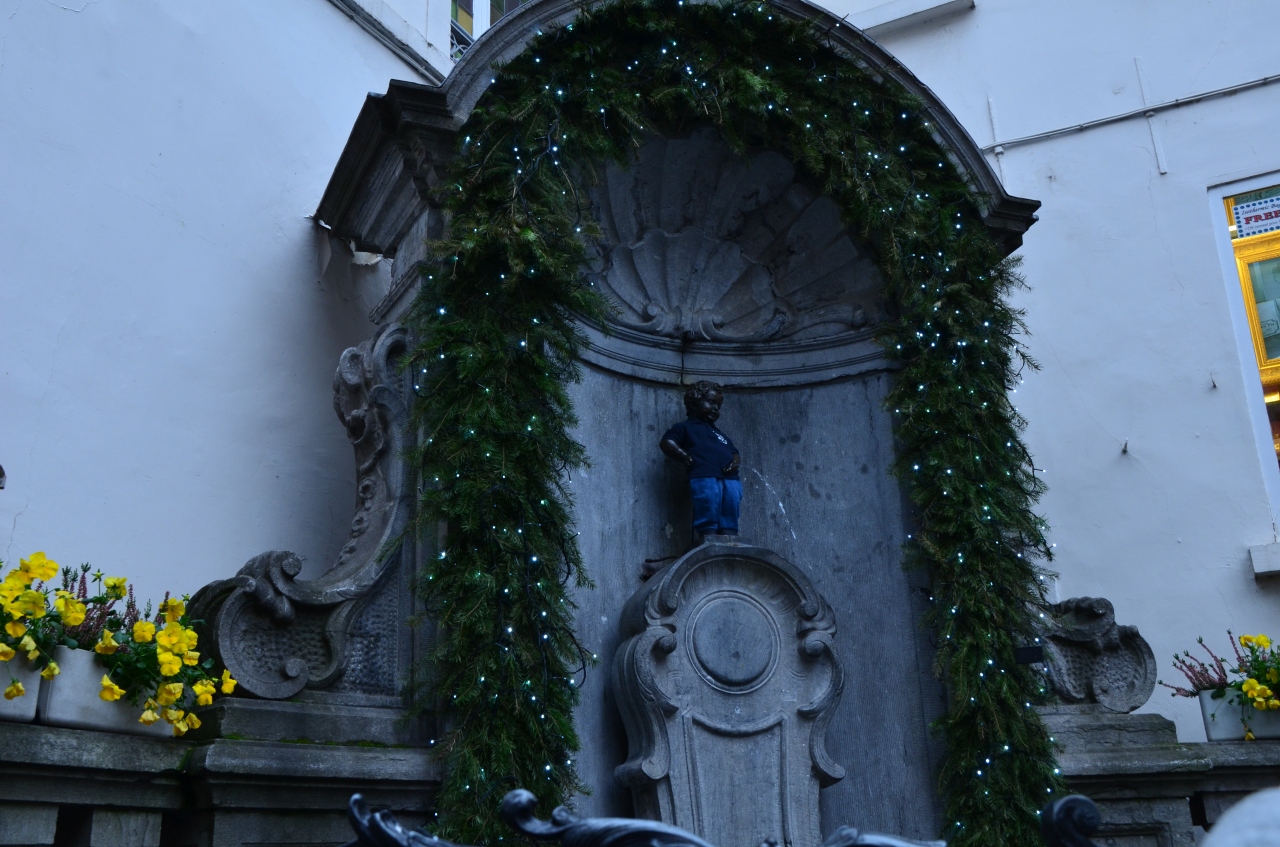 世界三大ガッカリの一つとされる、ブリュッセルの小便小僧ですが、実はこのジュリアンくん、すごくオシャレで、いろんな機会に衣装が贈られるものですから、今では数百着もの衣装持ちだそうで、この日もブルーの上下の衣装を身に纏っていました。