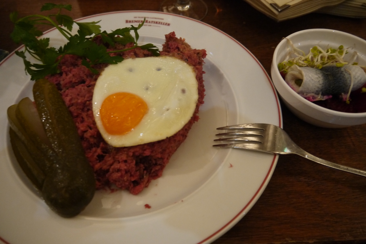 私は北ドイツ名物のラプスカウスLabskausを食べましたが…正直あんまりおいしくなかったです。