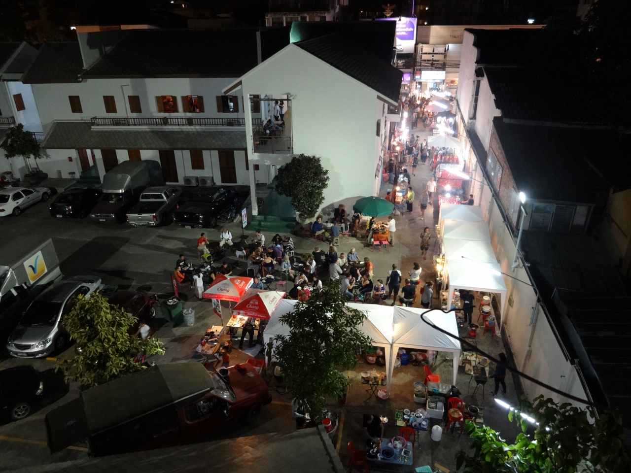 日曜の夕方から、ターペー門からワット・プラシンまでの道が歩行者天国になり、多数の露店が出店します。
