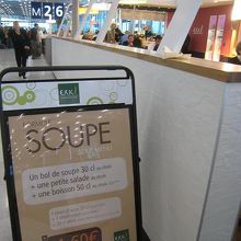 パリの空港、搭乗ゲートの近くにあるエクスキ。スープ(30cl)とサラダ、ドリンク(50cl)のセットが11.60ユーロと量に対して決して安くない代金です。私はセットメニューよりもキッシュが好きです。場所によっては快適なソファがあるので待ち時間中、休めます。