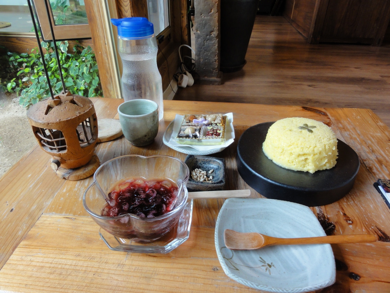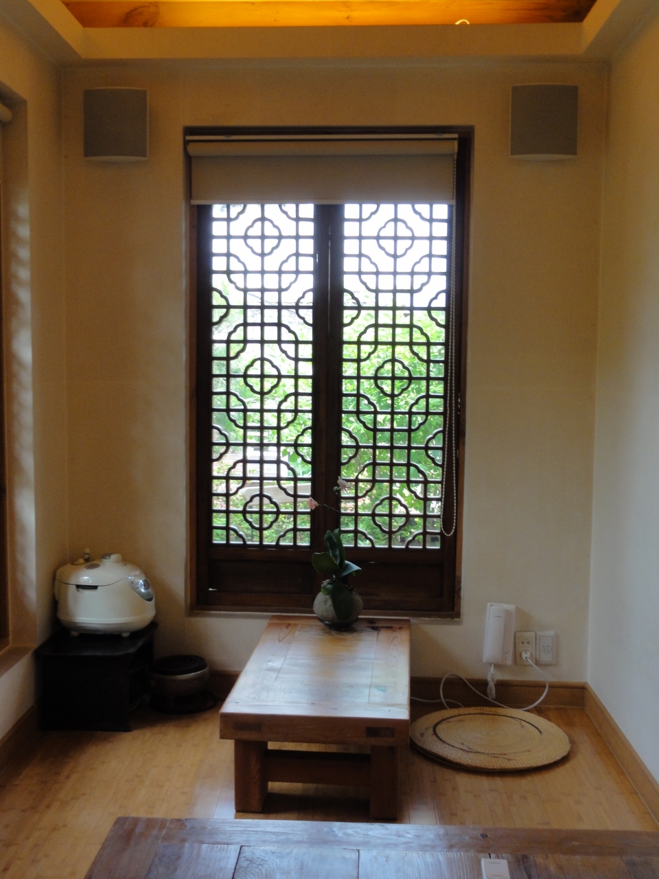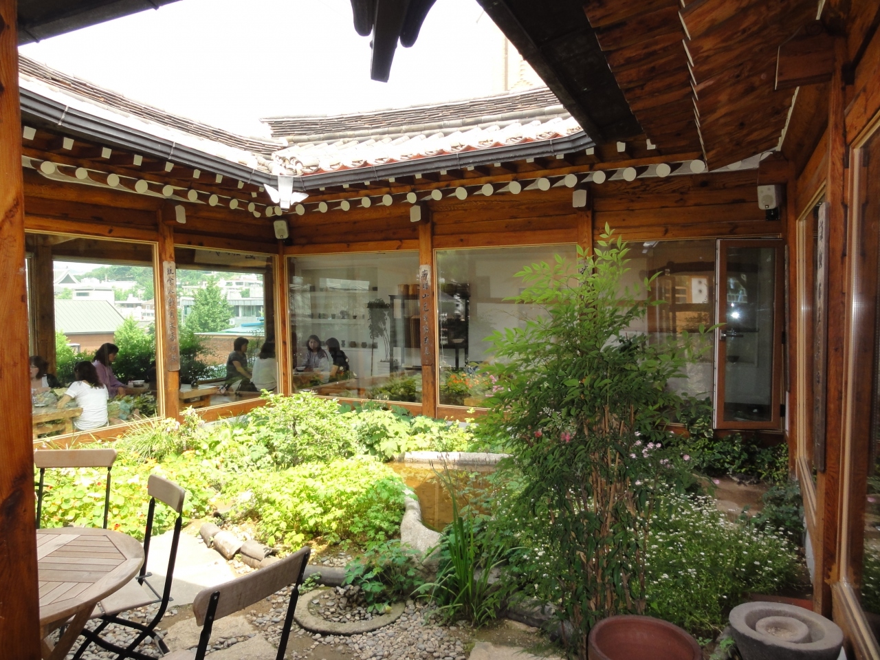 高台にある韓屋を利用した伝統茶院で、大きな窓から景福宮の屋根や中庭の花々を見渡すことができます。調度品もセンスが良くくつろげました。
