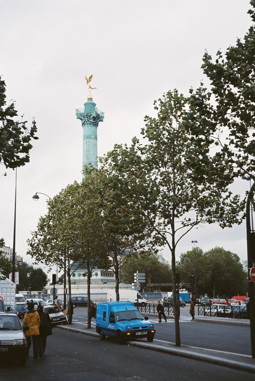 バスチーユ広場は地下鉄バスチーユで降りてすぐのところにあります。真ん中にこの広場のシンボル、天使のオベリスクがあり、広場を取り囲めむようにカフェやオペラバスチーユなどが並びます。また、ここから延びるリシャール・ルノワール通りには市場が立ちます。
