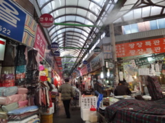 南大門市場などと違い市場全体がアーケードになっているので、雨や雪の日でも楽しめます。市場内の道もすっきり整然とレイアウトされ、広くて歩きやすいです。