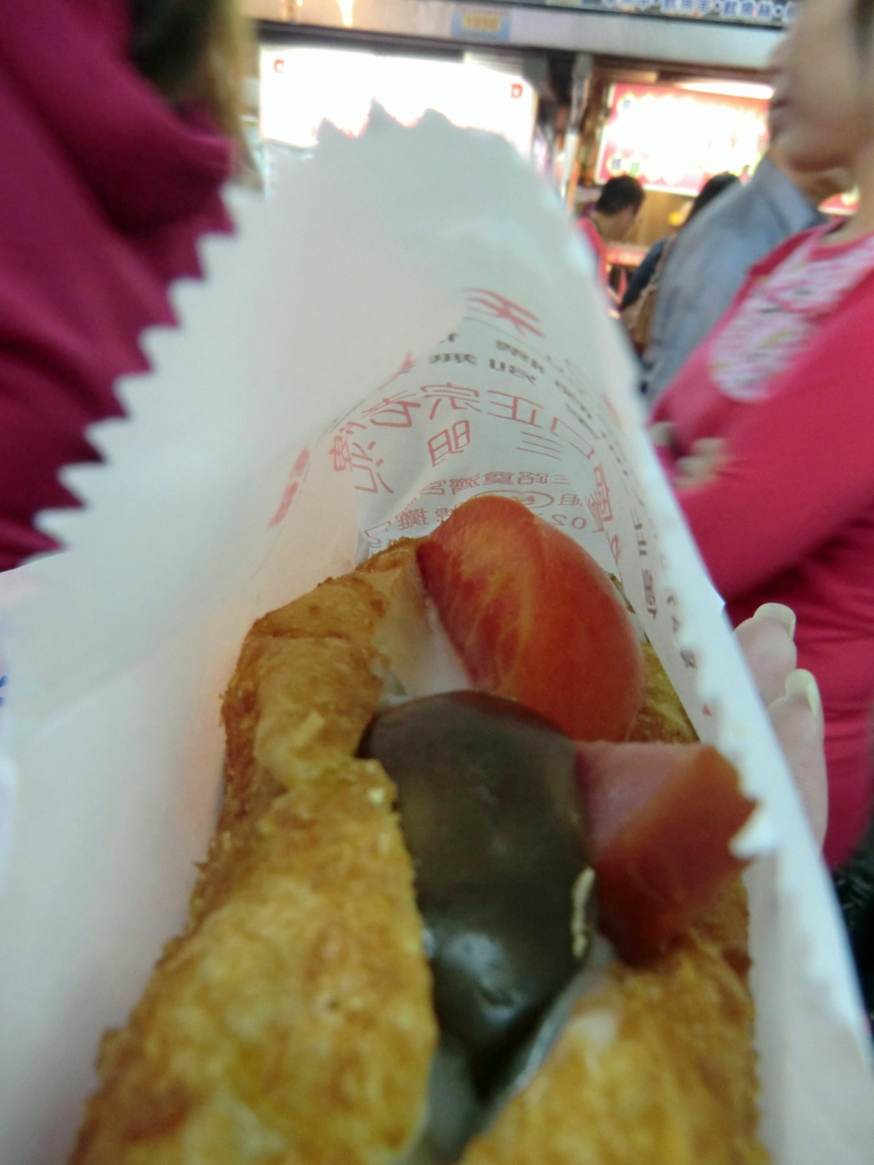 さくさく揚げパン、甘い台湾マヨネーズ、黒卵が日本に無い味でおもしろい