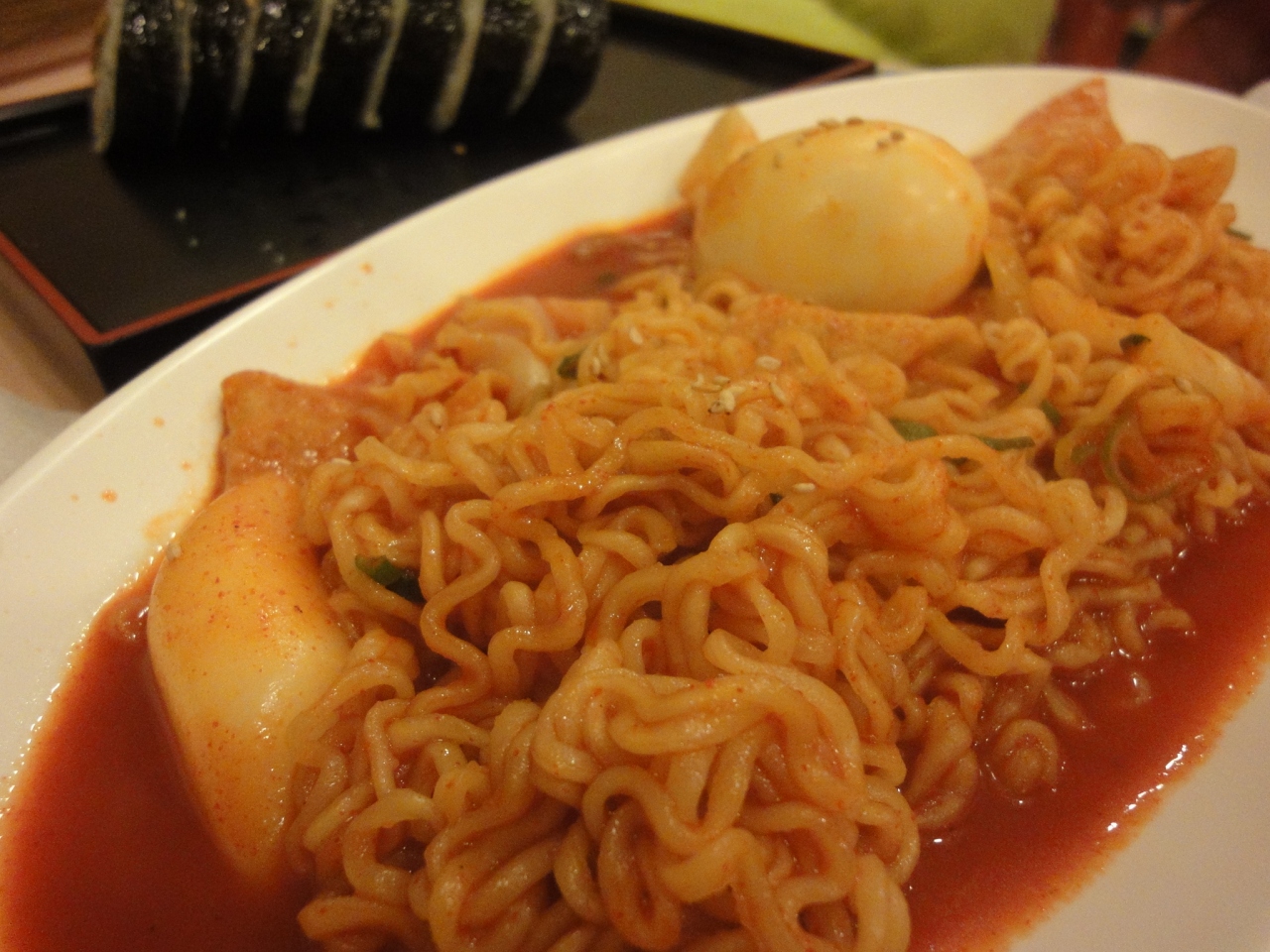 キンパが美味しいのはもちろん、それ以外のメニューも充実しています。チャーハンやオムライス、うどんにおでんなど、何度行っても飽きません。よく周囲の地元の方達がオーダーしている「ラポッキ」。気になって食べてみたのですが、何とも韓国らしいジャンクフードで美味しかったです。キンパ以外にもう一品、となったら一度食べてみて下さい。