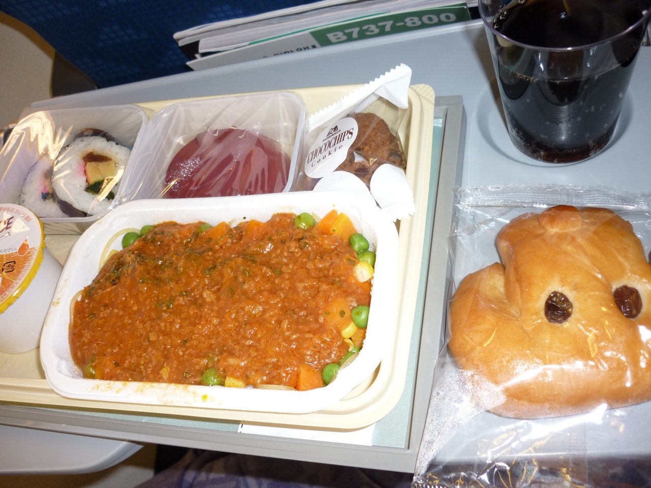 行きは KE720便 午前6:25発にのり9:00到着予定でした。今回は娘の隣りで窓際の席。横の列は 左窓際2 中央3 右窓際2といった列になっていました。割と小ぶりな飛行機でしたので、DVDなど見れずでした。