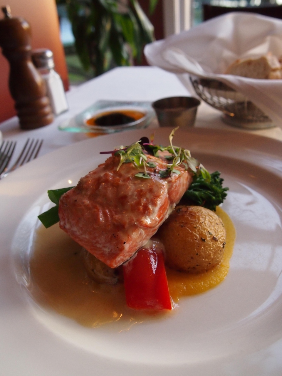 シーフードのメニューが豊富な本格的レストラン! 夕方は、English Bayの夕焼けがキレイ!
