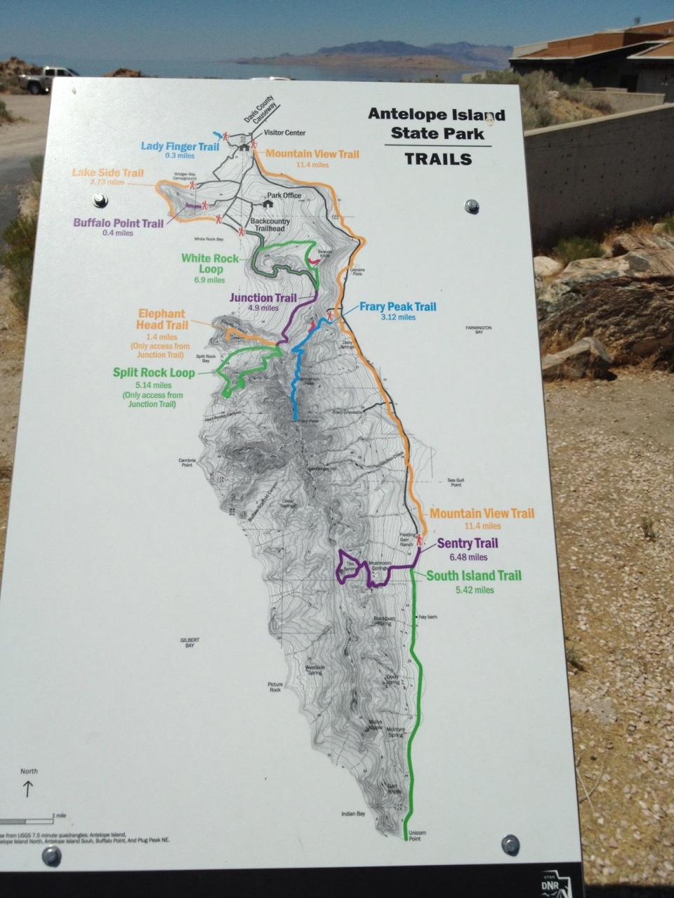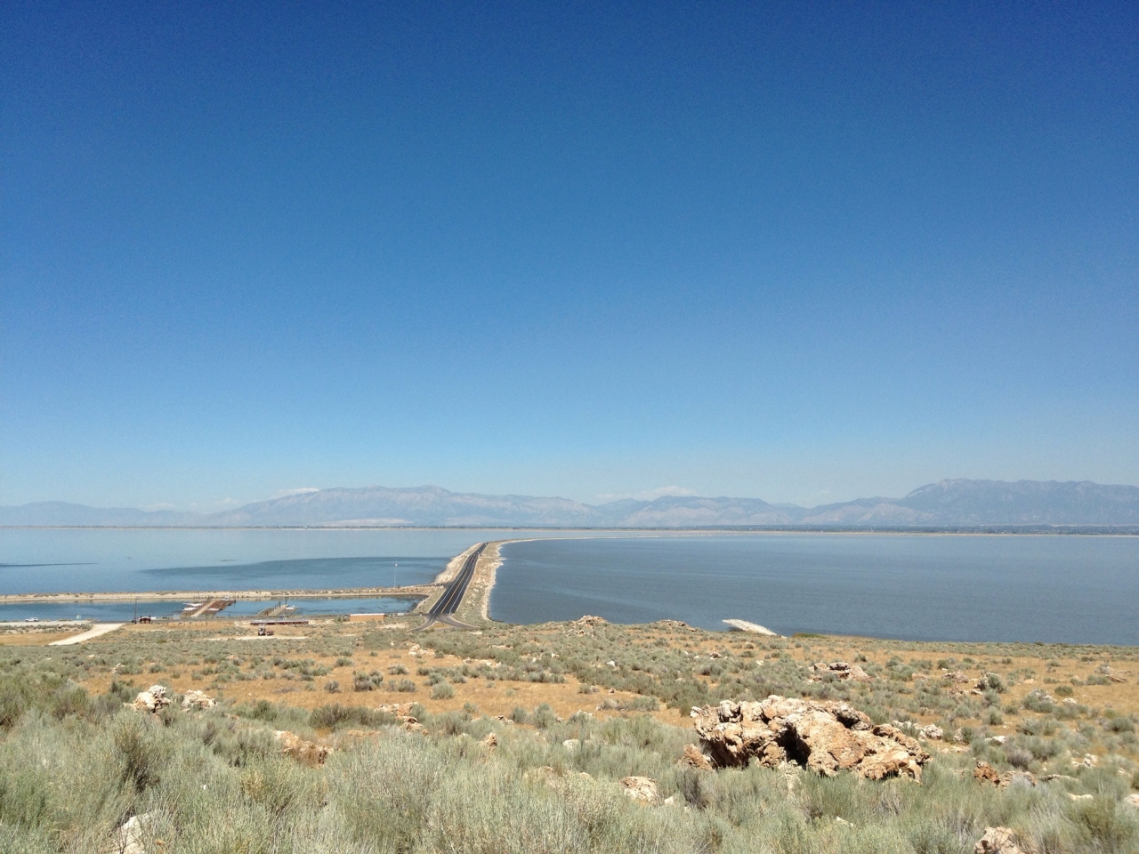 グレートソルトレイクに浮かぶ、アンテロープアイランドのほぼ全エリアが州立公園になっています。