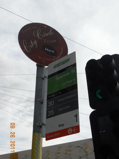 無料のトラムの停留所のマークは写真の通りです。 時計回りと反時計回りと両方の路線がありました。 City Circle Tramに関しての詳細は、