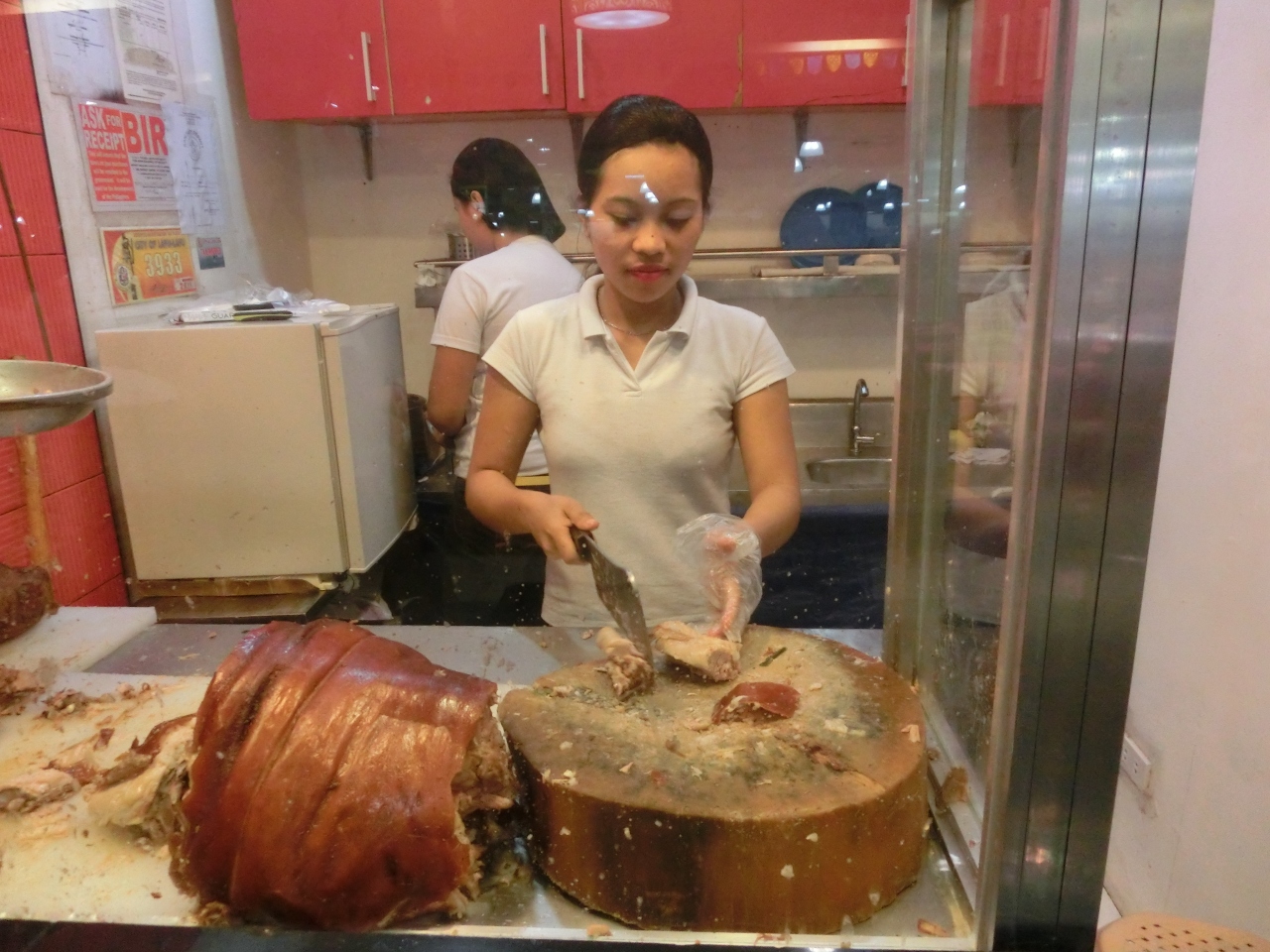 疲れたのでココナッツシェイクとソフトクリームを食べながら休憩、最後に「レチョン」をテイクアウトして、タクシーで帰りました。