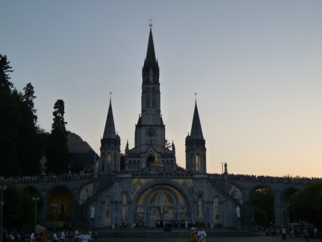 ルルドは奇跡の泉で有名なカトリックの巡礼地です。特に病をもつ人々にとっては重要な聖地となっています。夏の間、この聖域では、復活祭から10月15日までの間、毎晩9時からロウソク行列が行われます。私も訪ねてみましたが、夜9時が近づくにつれて、ものすごい数の人が集まってきます。車椅子の方も多く見かけます。ロザリオ聖堂の方に登って眺めてみると、多数のロウソクが夜景のようで非常に綺麗です。この光景は一見の価値がありますので、是非夜に聖域を訪れてみてください。