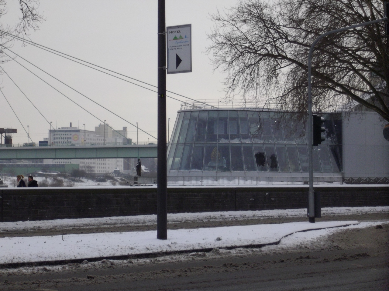 チョコ試食出来る!と聞いてケルンの観光の目玉に行きました。中央駅から歩きましたが、寒い日と言うこともあり結構な距離を歩いた・・という感じ。川に突き出すガラス張りの建物を見た時には泣きそうでした。
