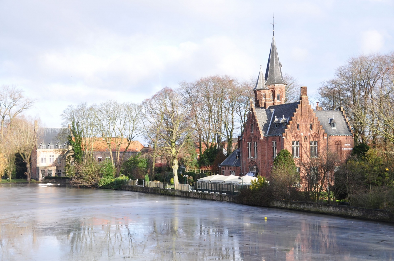冬のブリュージュは寒い。とにかく風が冷たい。湖も凍っていました。