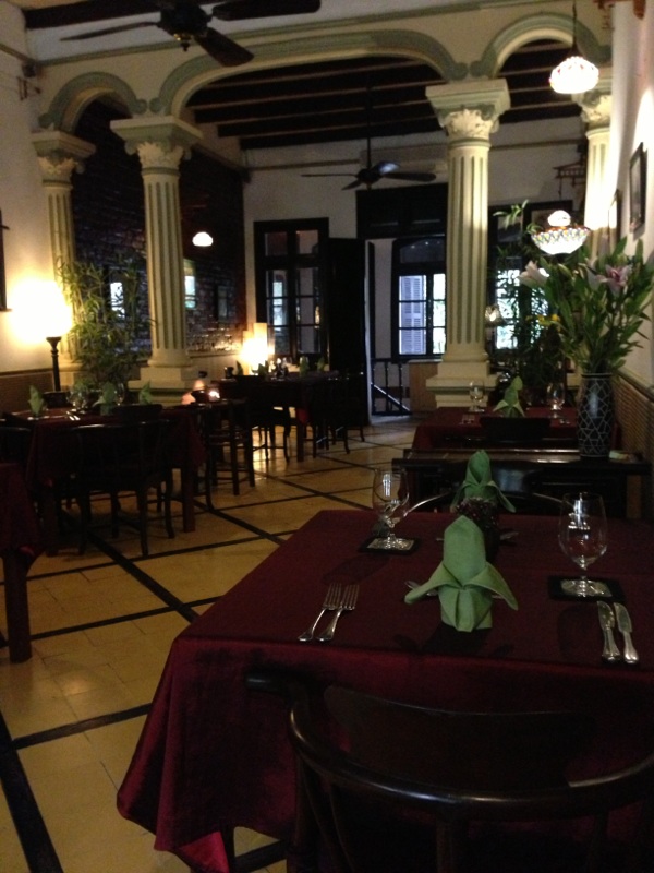 ホアンキエム湖の北側から歩いて3分程度の場所にあり、旧市街でショッピングを楽しみながら立ち寄れます。ベトナムは以前フランス領だったので、ベトナム料理以外なら、フレンチかイタリアンがおすすめ、このお店は、ディナータイムは割高ですが、昼ならお得なコースがあり、前菜、メイン、デザートそれぞれ3つくらいの中からチョイスできます。ベトナムはビール以外だとあまり美味しいお酒がありません、食中酒となるとやっぱりワイン、でも輸入ワインはVND(ドン)が弱いので、お高めです。でも、ここのフランスワインは¥4500くらいでも状態の良い美味しいものがあります。一人当たり1/2本くらい飲んで食べて昼なら¥3500くらいで上がります。おすすめです!