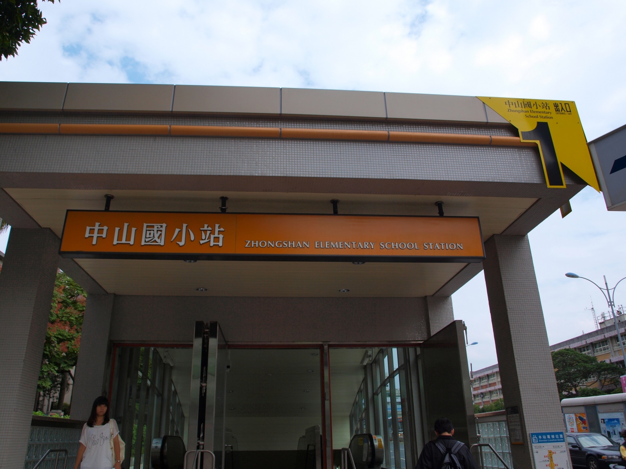 洋風な外観の台北市立中山國民小学校近くの駅
