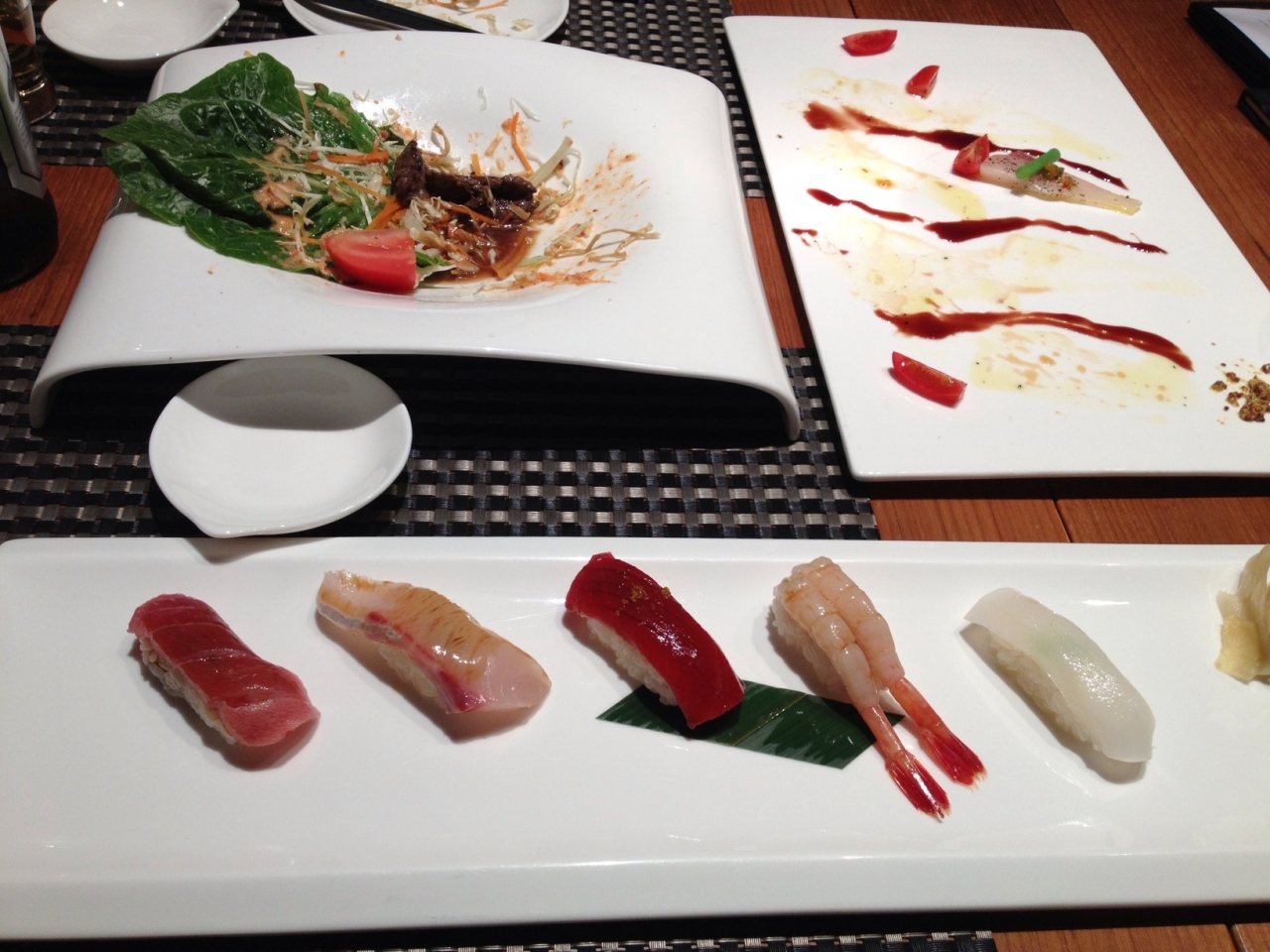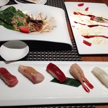 刺身のカルパッチョ、ステーキ、海鮮丼、玉子焼き、握りずしと色々食べましたがどれも外れなく美味しかったです。コースで頼むともう少しリーズナブルかも知れません。