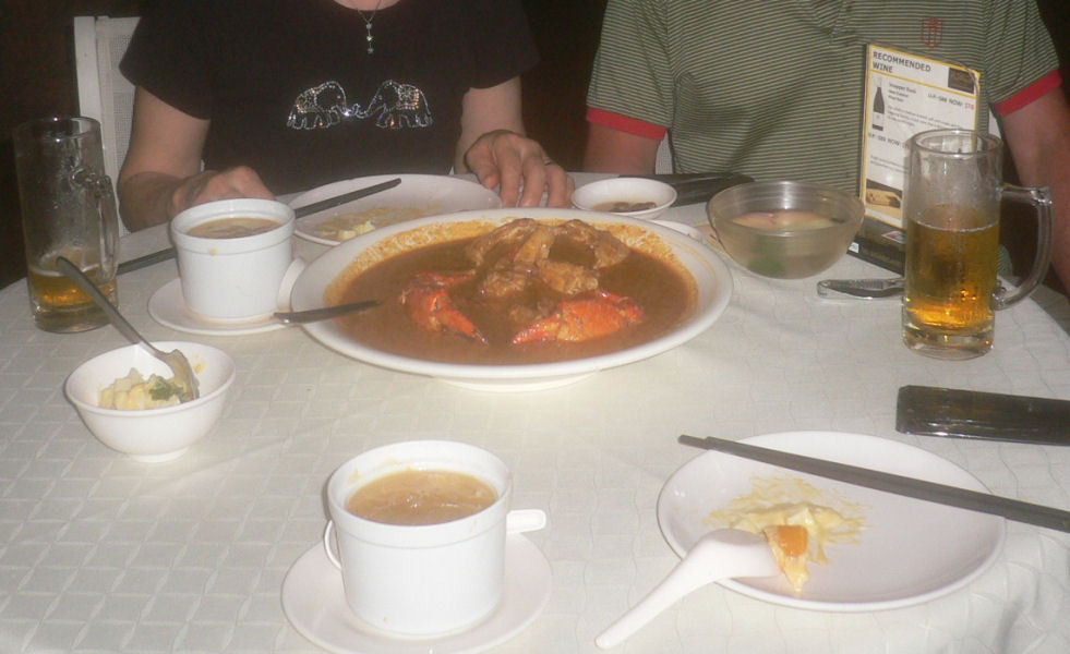 チリクラブのコースを食べると、結構なお値段になりますが、ふかひれ、伊勢海老のサラダ、チリクラブのコースは、美味しくて大好きなお店の一つです。宿から近い、マリーナ・ベイ店を予約します。アウトサイドで、円卓を囲んで、心地良い海風と、イルミネーションを見ながら頂きます。