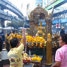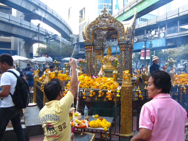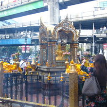 チットロム駅を出て連結の歩道を歩いていたら、どこからともなくタイ舞踊の音楽と歌声が・・・都会の真ん中で、こんな宗教的な場所がドーンとあるのは不思議な光景でした。