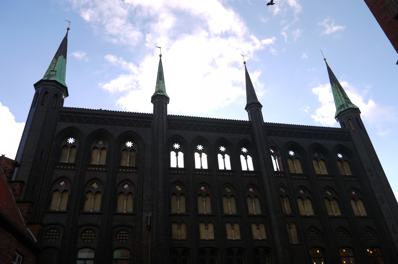リューベックの市庁舎ではハンザ会議が開催され,ハンザ同盟の重要な意思決定がここでなされました。ゴシック様式で建てられた黒レンガ造りの重厚な外観が,質実剛健なハンザらしい風格を感じさせます。