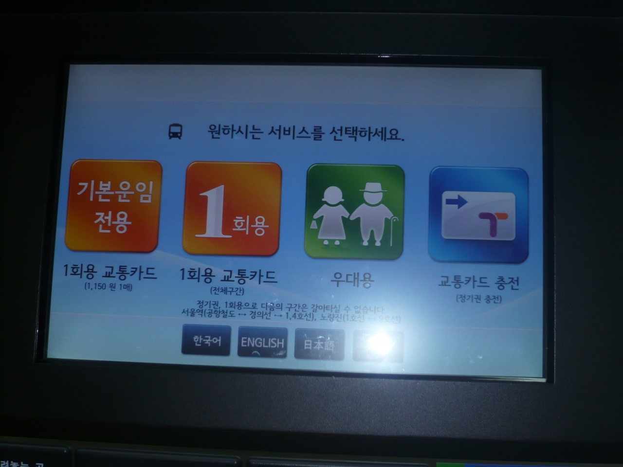 明洞や忠武路などのLine4から地下鉄と空港鉄道を乗り継ぐ場合、便利な券売機で空港まで通しで買うことができるが、乗換駅に注意しなくてはいけない。路線地図では、ソウル駅でLine4から空港鉄道に乗り換えることができるように見えるのだが、ソウル駅ではいったん改札を出なくてはいけなく、当然1回券の残高はゼロとなり、改めて購入せざるを得なかった。Line2と空港鉄道の乗換駅である弘大入口駅では、トランジットのゲートがあるので、ソウル駅でLine4からLine1に乗り換え、市庁駅でLine2に乗り換えなくてはいけないようだった。