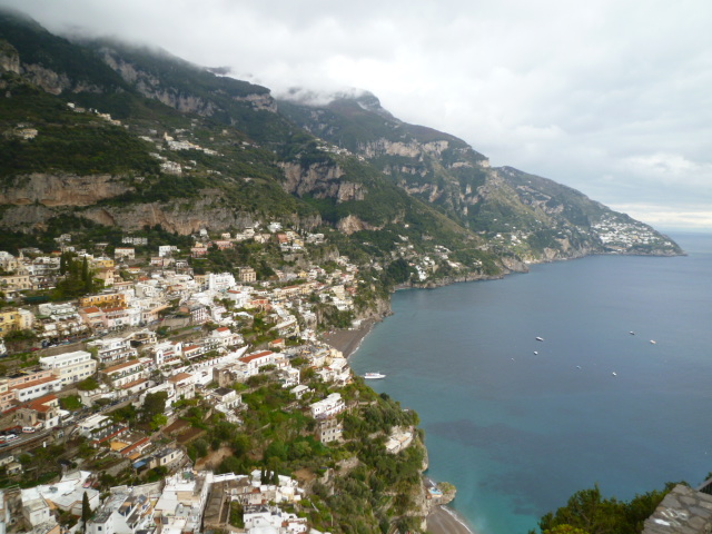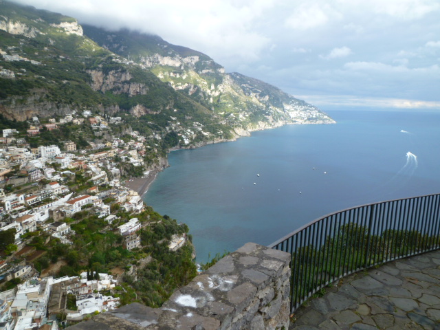 色々な展望台で「絶景、絶景」と言われますが、ポジターノ展望台からの眺めはまさに本当の「絶景」です。海と山とポジターノの街並みがマッチしていて最高の景観です。ポジターノの街からみると展望台は西の方にありますので、西から陽が当たる午後の方が、より美しく見えると思います。街の中心から徒歩で登ってくることもできますが、展望台のすぐ近くにバス停がありますので、バスの利用が便利でしょう。