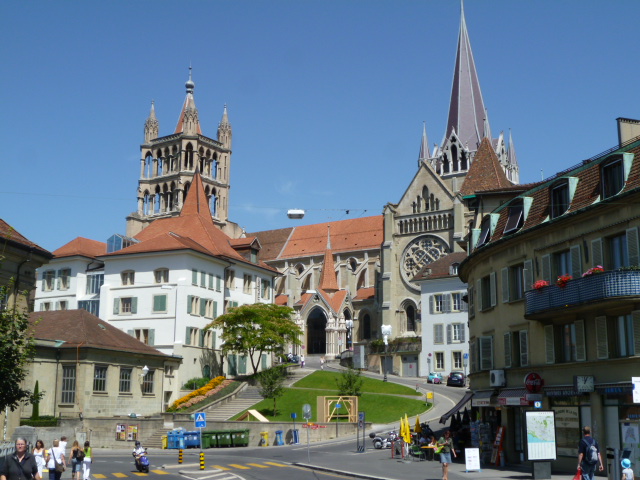 ローザンヌの大聖堂は、12~13世紀に建てられたゴシック様式の大聖堂です。高台の上にあるため、ローザンヌの街に君臨し、見守っている感じがあります。近くで見ると結構大きくて、その荘厳さを感じ取れます。それから、ここからの眺めは非常に良いです。ローザンヌの街並み、レマン湖、そしてその先の山々まで見えます。ここは本当に気持ちの良いところです。行きは駅からここまでタクシーを使いましたが、帰りは降りなので、旧市街の散策を兼ねて歩いて駅に戻りましたが、これがまた良かったです。