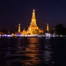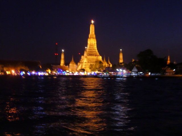 夜は、寺院のライトアップを目的にエクスプレスボートを利用しました。