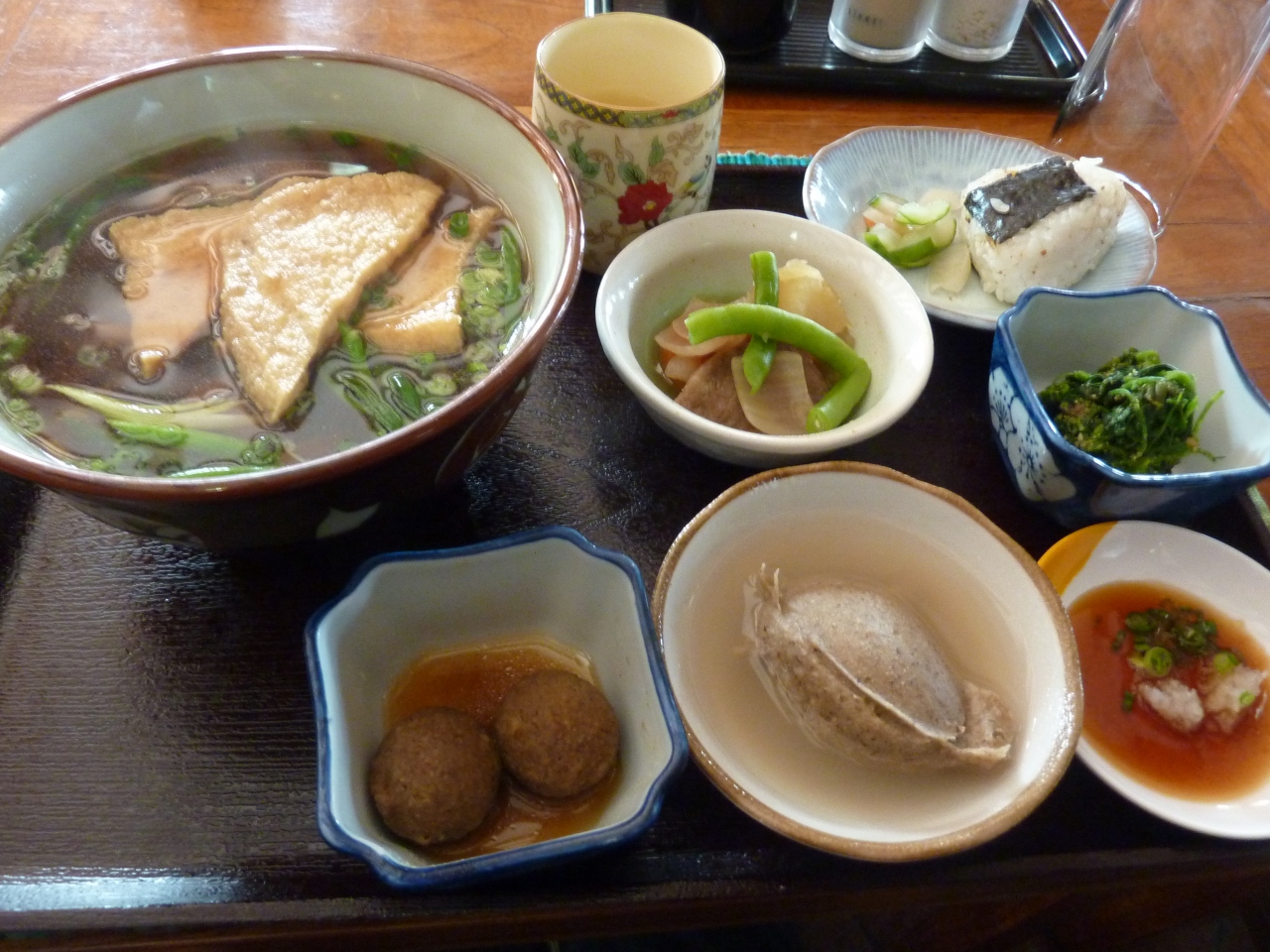 小さなおかずもついていて、定食の感じでしたが、おにぎりが時間がたっているのか、固くて減点させていただきました。