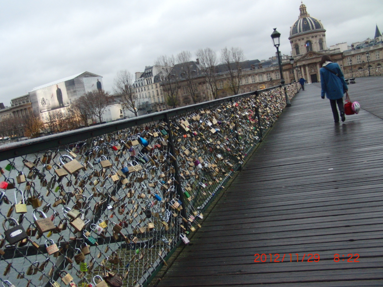 はじめ見たときは、何がたくさん付いているのかと思いました。ここは恋人橋といって、南京錠を橋の欄干につけて、錠を川に投げ込むと、一生はなれないと言われているそうです。ただ、あまりの鍵の量に、重さで橋が落ちないか心配になりました。