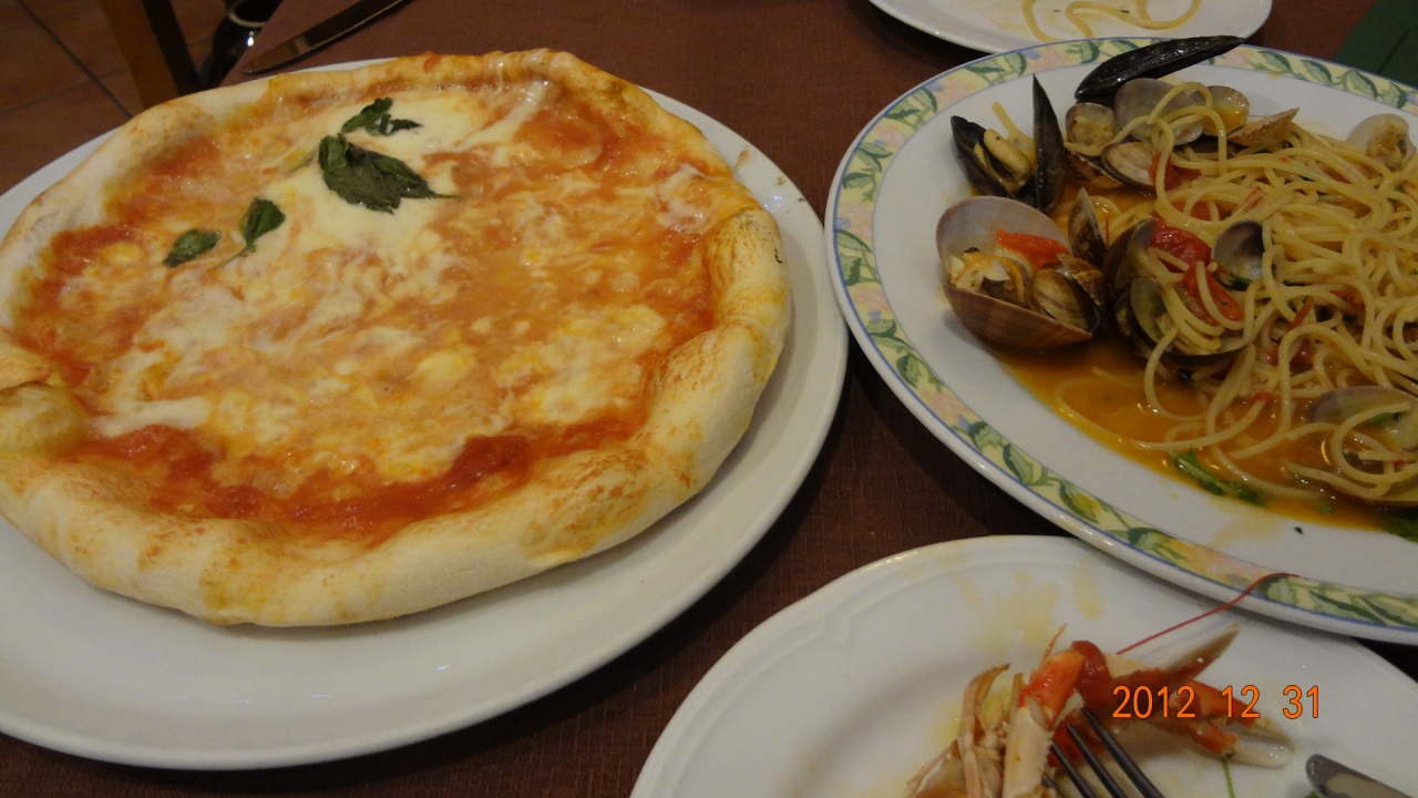 薦められるままにピッツァ・マルゲリータと海鮮スパゲティを頼んでみると