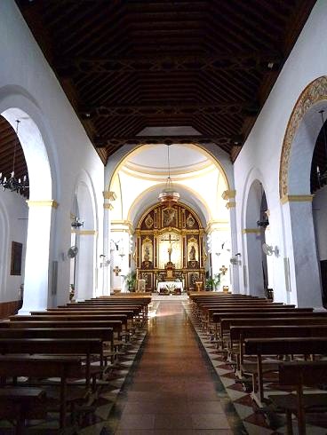 バス停からフリヒリアナの町の高い場所まで行って戻ってくる途中、教会が目にとまりました。教会前はちょっとした広場になっていました。教会の中へ入ると、アーチ型の白い壁に木でできた天井、長椅子がありました。