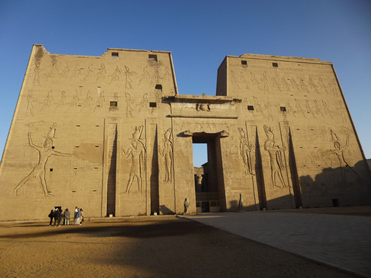 エジプトの遺跡群はどれもこれも素晴らしいので、ほかの物と比べると若干見劣りする感じもありますが、もちろんこの神殿も例外ではなくすばらしいです。他の神殿に比べると塔門に刻まれたレリーフが特徴的です。また塔門の前にあるホルス神が格好良かったです。