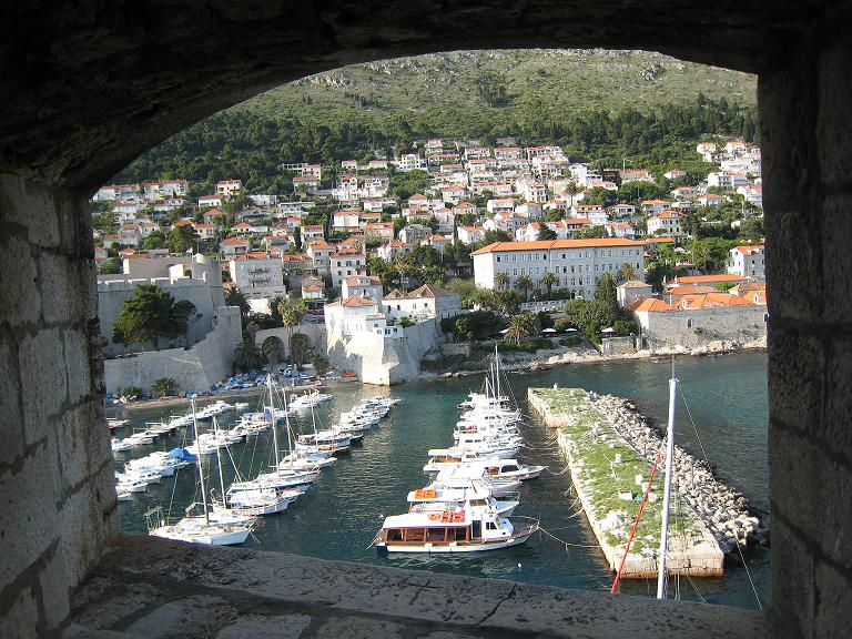 また、城壁に上って港を臨むこともできます。この時ちょうど結婚式を挙げたカップルが船から降りてきました。