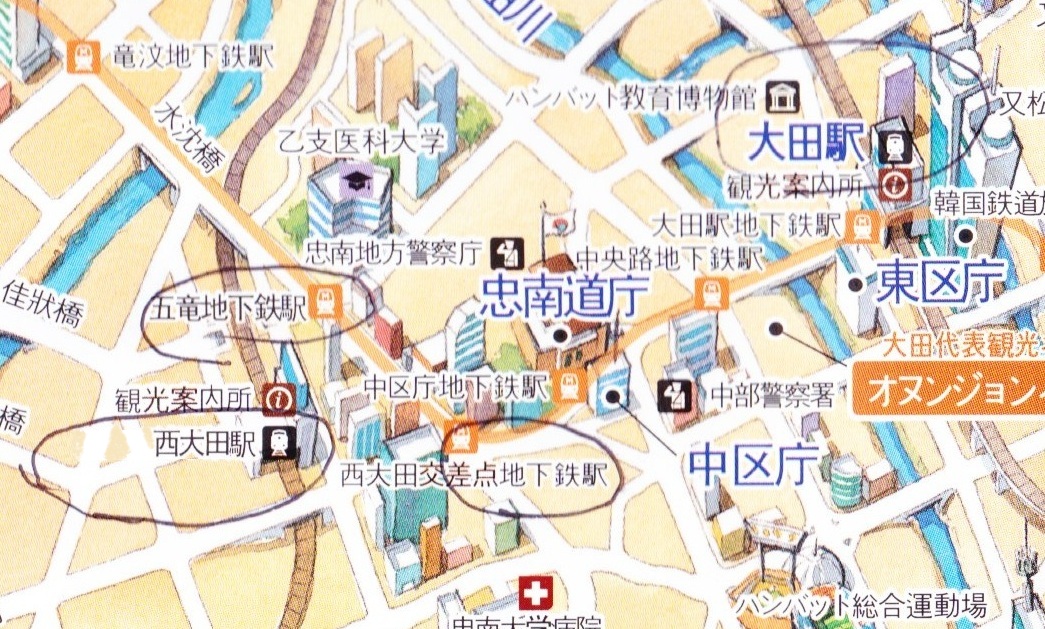 地下鉄に乗って「五龍駅」か「西大田ネゴリ駅」から<西大田駅>へは、徒歩で約15分ほどです。