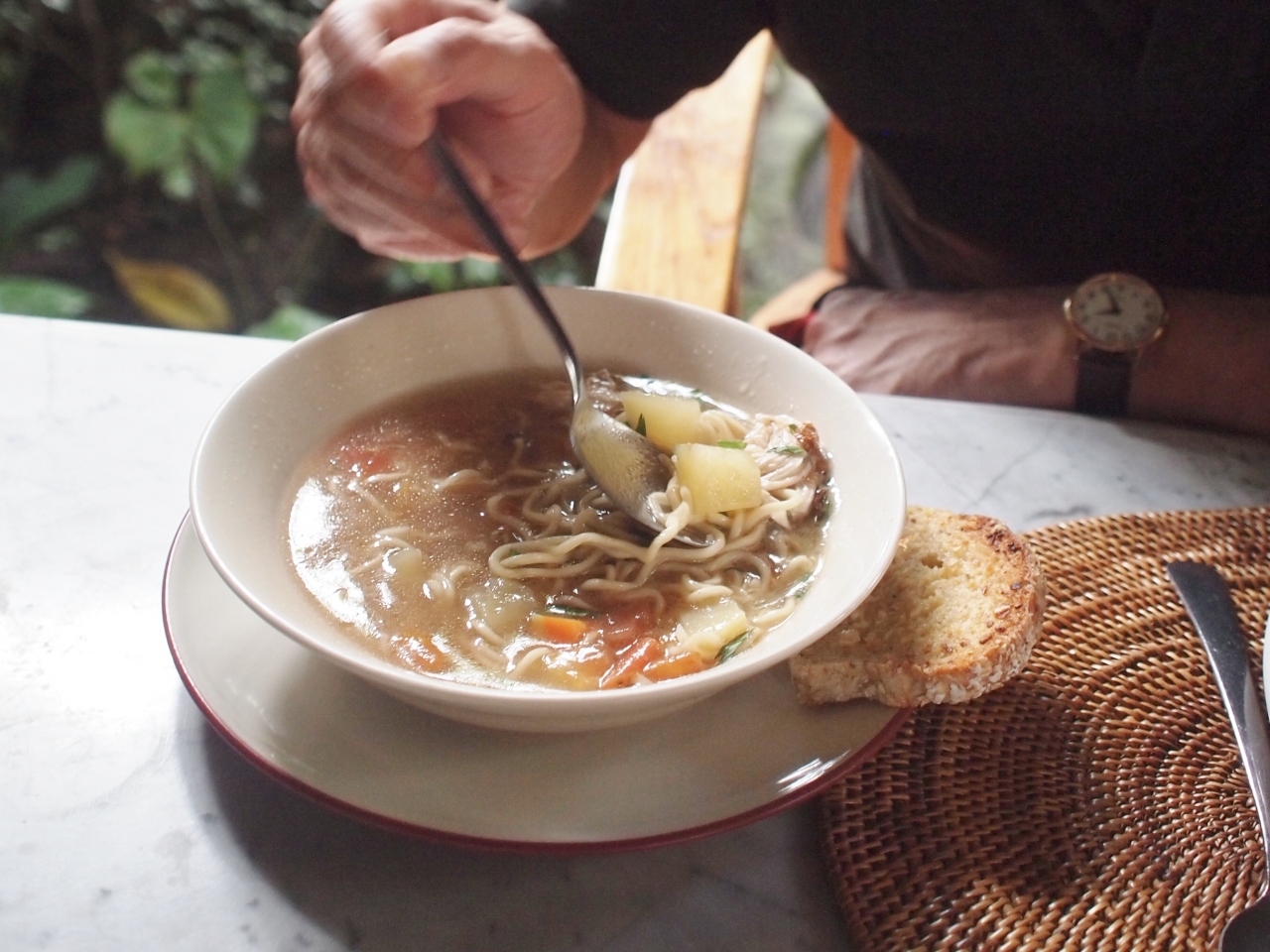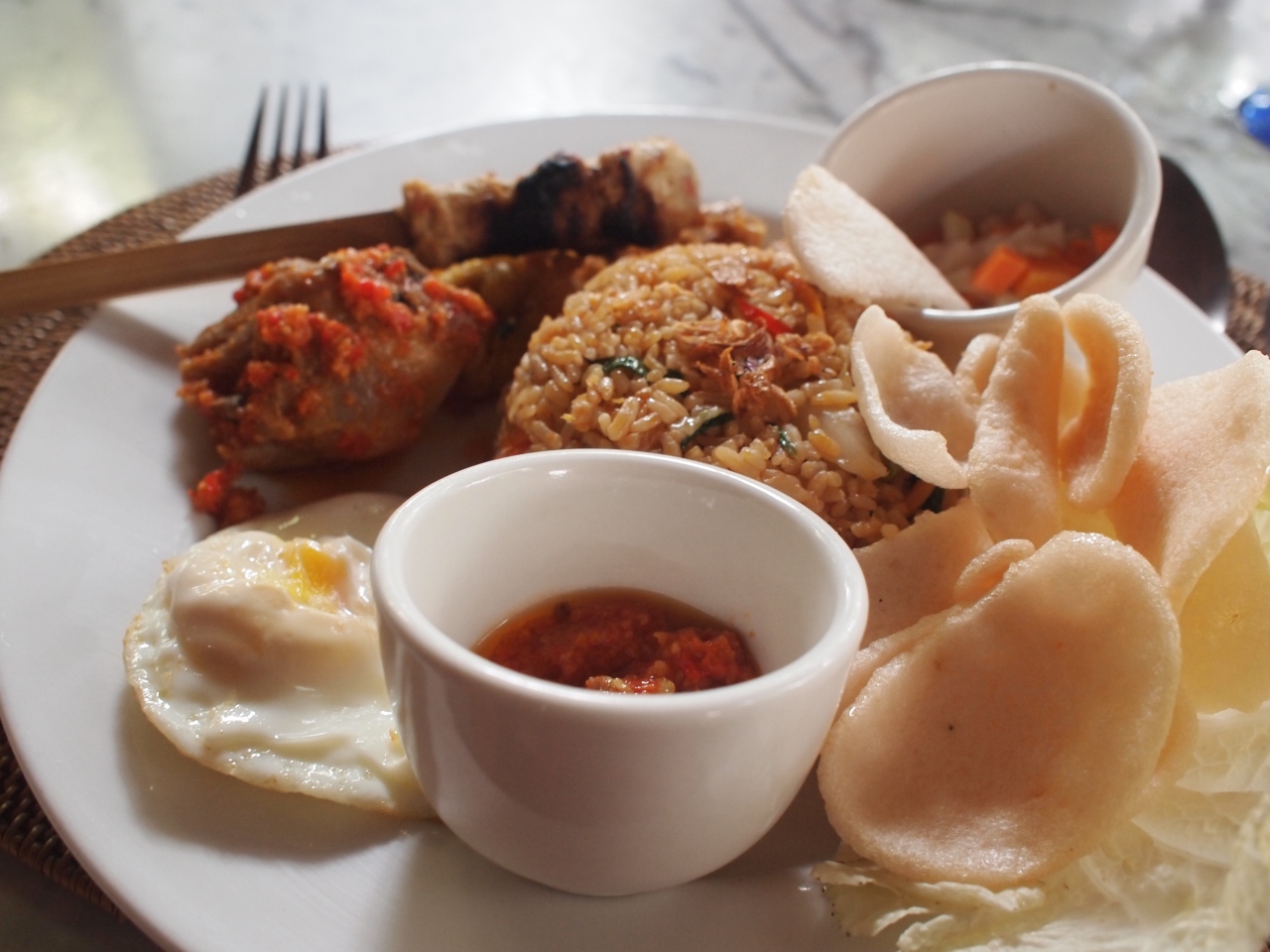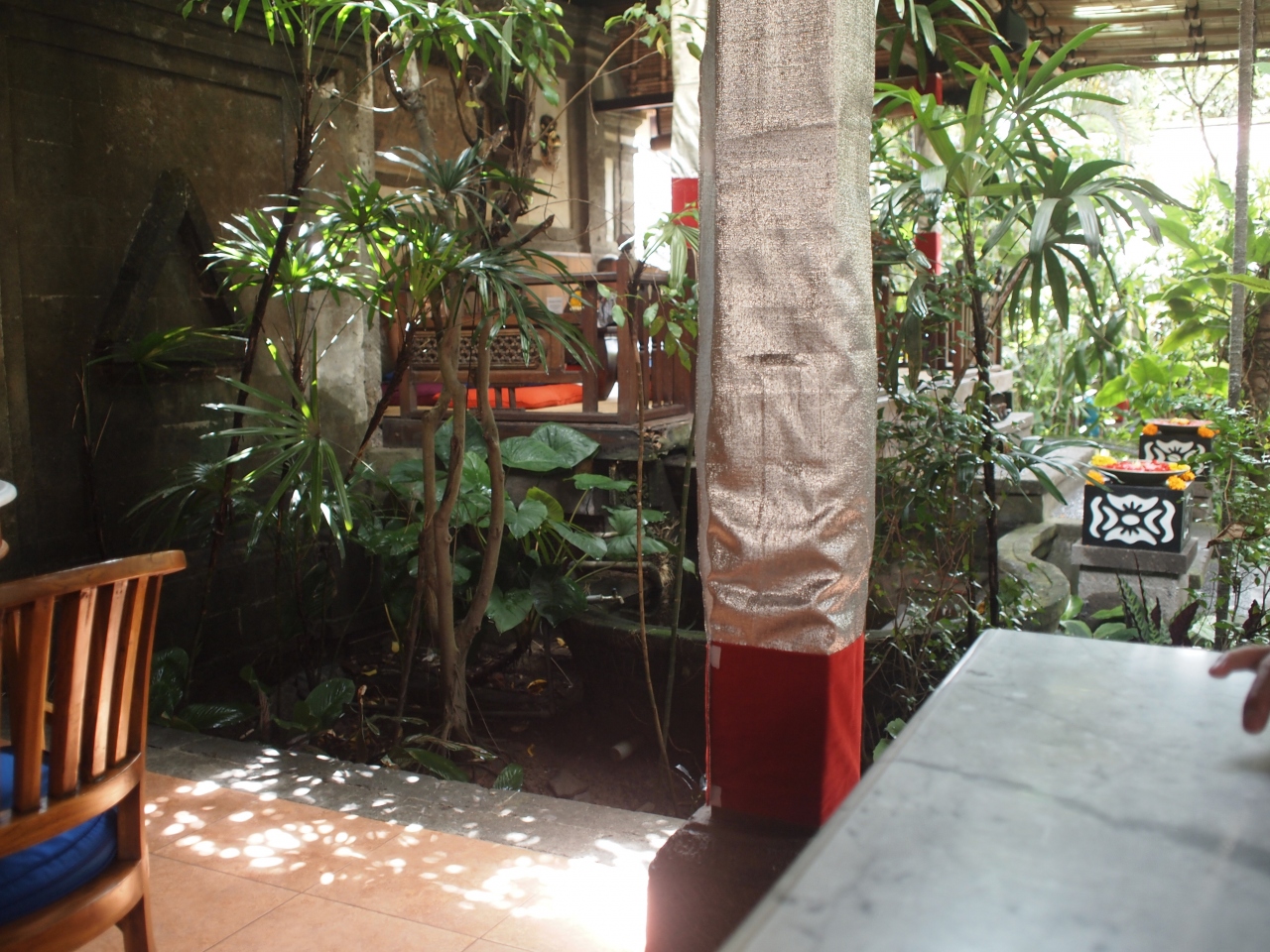 ジャラン・モンキー・フォレスト沿いの、ガイドブックにも載っている有名店です。庭の中には広い庭園があり、緑を見ながら離れで食事も出来ます。インドネシア料理以外にも色々なメニューがありますが、私達はミー・ゴレンやナシ・チャンプルなどインドネシア料理を頂きました。とても美味しくて、2回食べに行きました。