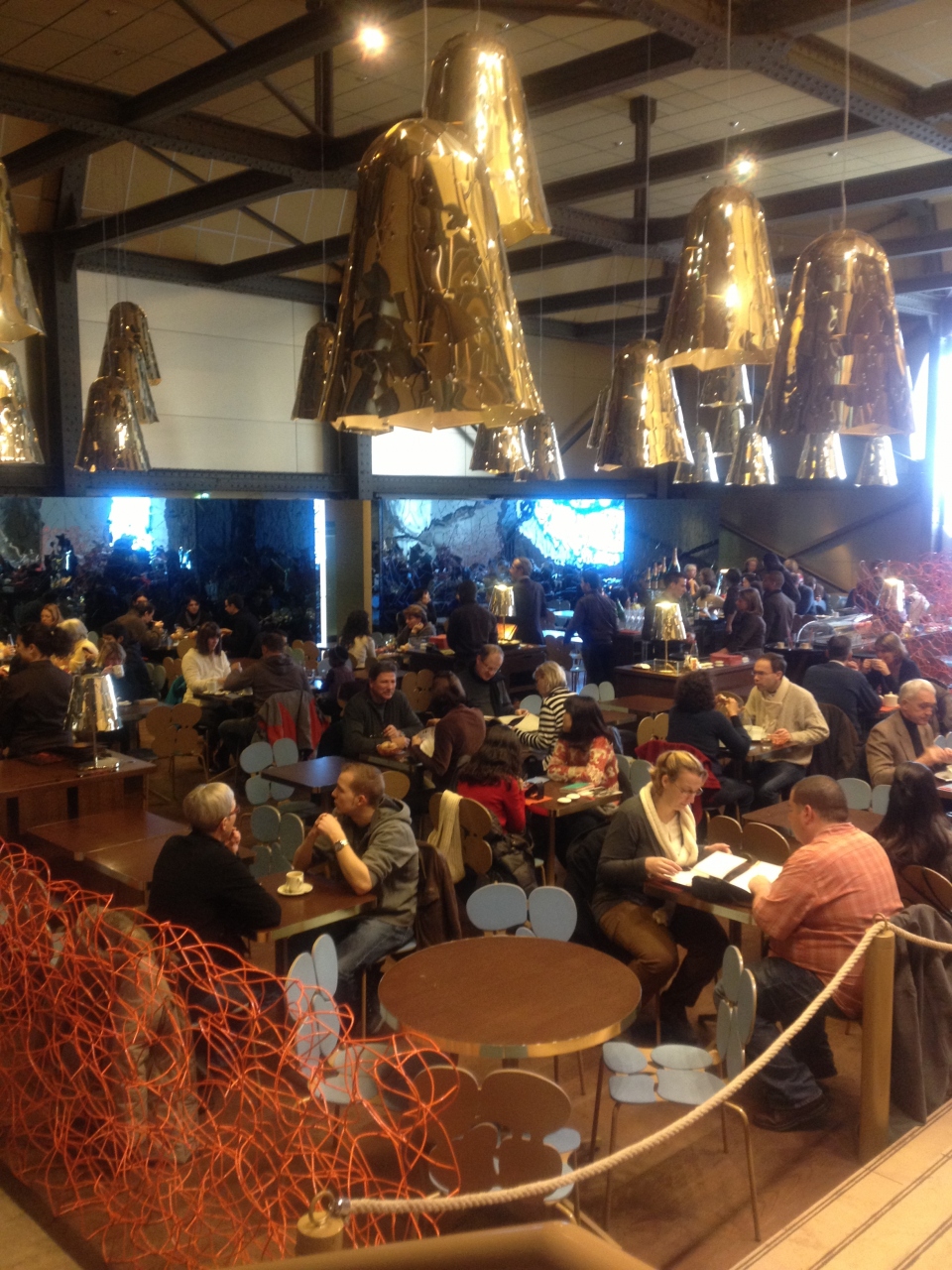 改装後上階を目当てにオルセーへ行きました。日本のテレビ番組で見ていたので、ああこれか~と期待通りでした。日曜日でしたので、それなりに人は多く、新しいカフェには昼前に入りました。パスタとリンゴタルト、紅茶2つ頼んで30.7ユーロ。それなりのお値段ですが、サービスも雰囲気もよかったです。中階のクラシックなレストランもよかったですが、私はこっちのカフェが好きです。